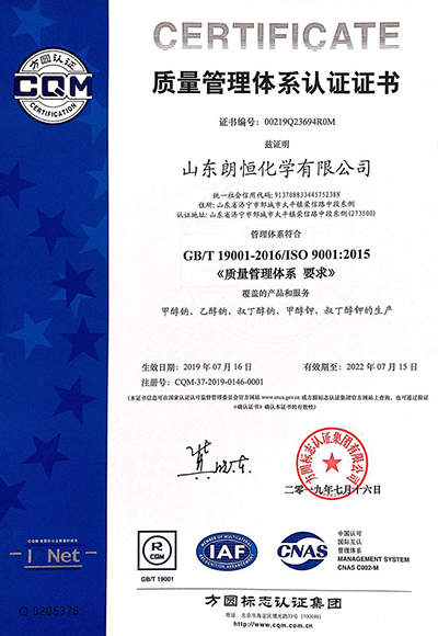 2019年7月16日,山東朗恒化學有限公司順利通過環(huán)境管理體系認證,職業(yè)健康安全管理體系認證和質(zhì)量管理體系認證.后續(xù)公司生產(chǎn)會更加專業(yè),規(guī)范化,竭誠服務好每一客戶.
