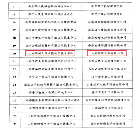 近日,根據(jù)《山東省企業(yè)技術中心認定管理辦法》(2021年修訂)(魯發(fā)改高技〔2021〕428號)和《關于組織申報2023年濟寧市企業(yè)技術中心的通知》有關規(guī)定,經(jīng)在線初審、信用核查、專家評審等環(huán)節(jié),濟寧市發(fā)改委公布了濟寧市2023年第二十二批新認定市級企業(yè)技術中心名單,山東朗恒化學有限公司被認定為濟寧市“市級企業(yè)技術中心”。