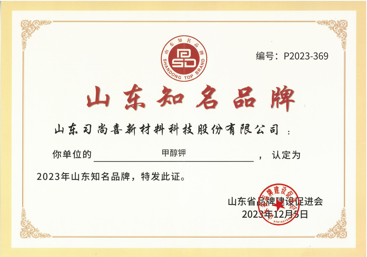 山東習(xí)尚喜新材料科技股份有限公司,乙醇鈉,甲醇鉀產(chǎn)品在張店區(qū)市場(chǎng)監(jiān)管局組織開(kāi)展的山東優(yōu)質(zhì)品牌、山東知名品牌評(píng)選活動(dòng)。通過(guò)山東省品牌建設(shè)促進(jìn)會(huì)的認(rèn)定,乙醇鈉產(chǎn)品榮獲“山東優(yōu)質(zhì)品牌”,甲醇鉀產(chǎn)品榮獲“山東知名品牌”榮譽(yù)稱(chēng)號(hào)。